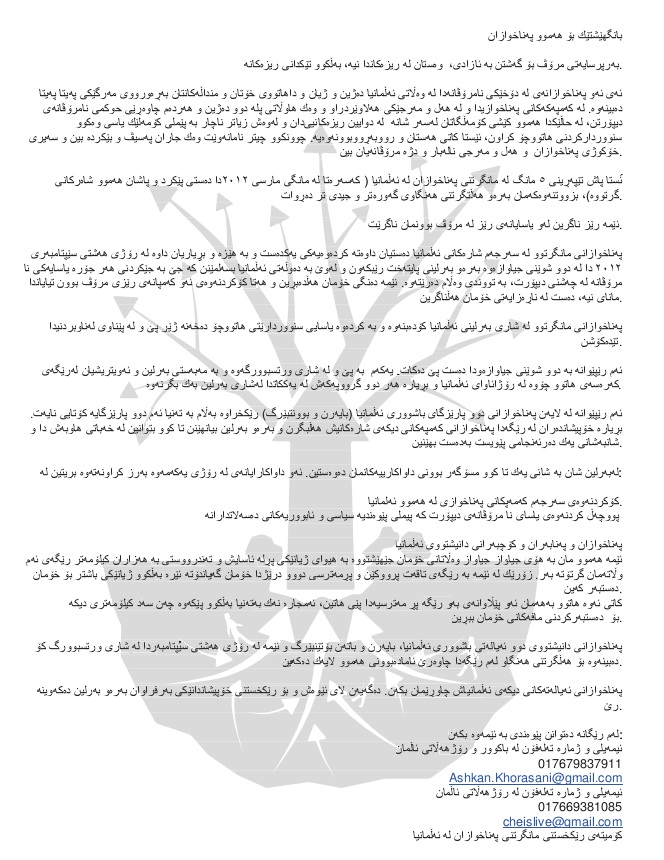 بانگھێشت بۆ گشت پەناخوازان لە ئاڵمان ڕۆژی ٠٨ی سێپتەمبەری ٢٠١٢