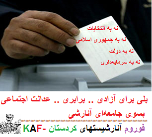 Azadîxwazan, yeksanîxwazan, dadperwerîyixwazan, ême enarkîstekan bêcge lewey ke le hemû cêyek û le hemû serdemêkda djî beşdarî dengdan û xohellbijradnîn û berdewam le hemû wllatanda berrûy hellbjardinî serweranda kempeynî djî dengdan berpadekeyn, lêreda be dyarîkrawî lem hellbjardne galltecarîyey komarî îslamîy êranda, leber sê ho, bo baykotkirdnî û dijwestanewe bangewaztan dekeyn: