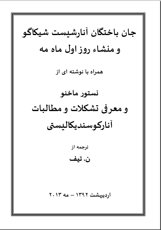 نوشته ی بالا بخشی از یک کتاب به نام «باکونین سیاسی: انقلاب و ضد انقلاب در اروپای مرکزی» ست که رنه برتیه* – René Berthier در سال ١٩٩١ منتشر نموده است.
